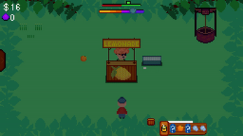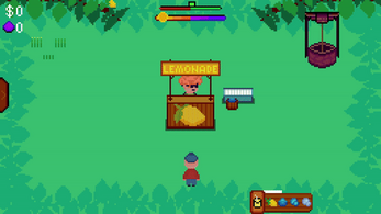 Point-and-click management with memorization mechanics. Run a lemonade stand by collecting fruit, water, sugar, and ice, while serving customers drinks. During the night, you will need to remember recipes on your own, as parts of the order will contain question marks in place of the ingredient.